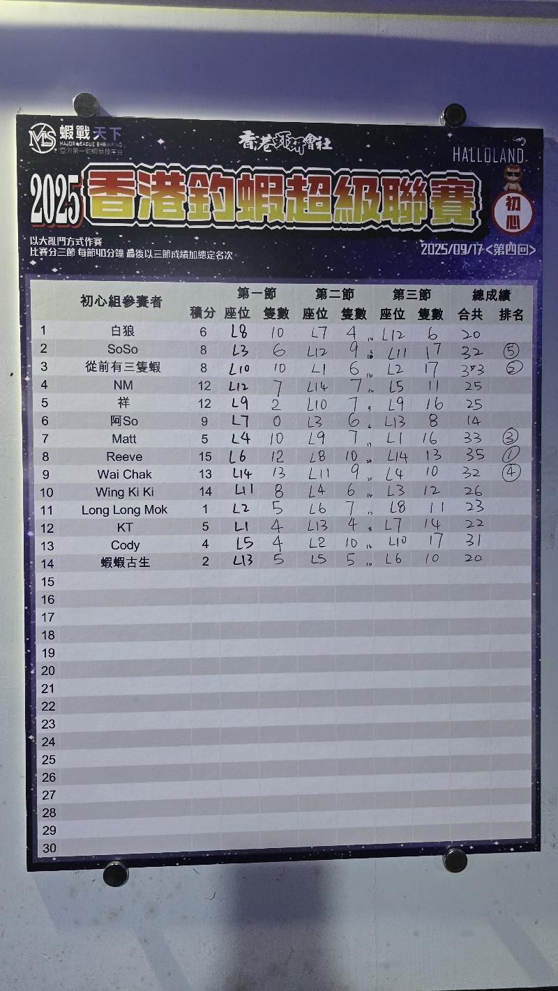 香港釣蝦超級聯賽 - 初心組 <第4回>
