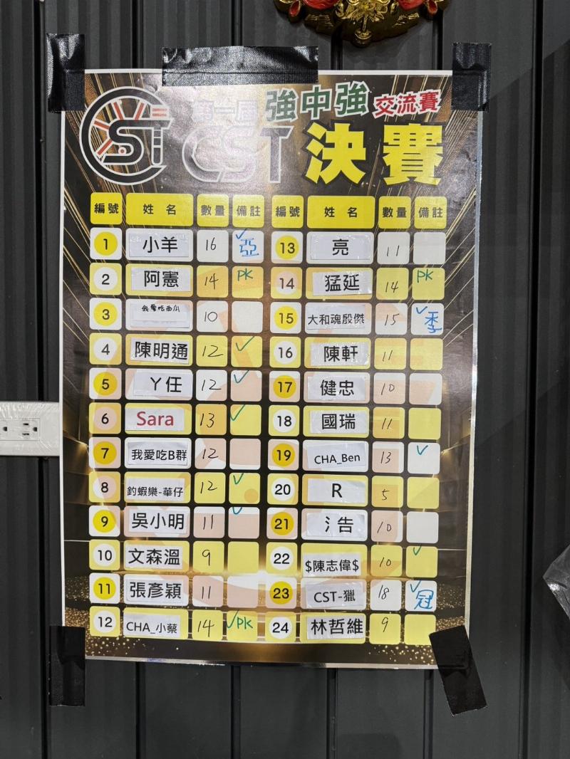 ⚡️⚡️⚡️參賽選手抽完籤後,自行依賽程場次張貼名條,比賽進行後補貼名條